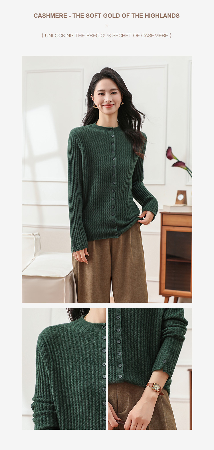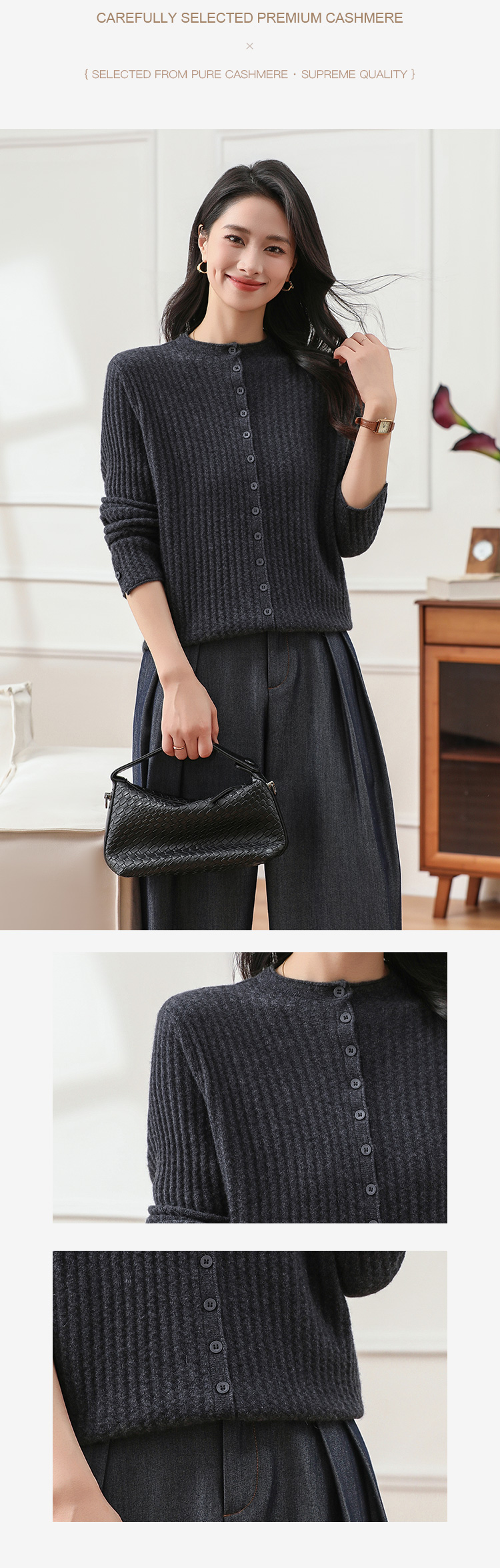 100% Cashmere | 라미너스 스타일 가을겨울 신규 크루넥 버튼 캐시미어 카디건(ルミナススタイル 秋冬 ニュー クルーネック ボタン カシミヤカーディガン) – YKNL5672T