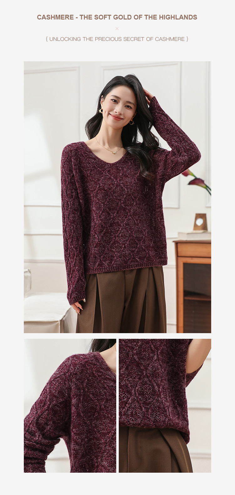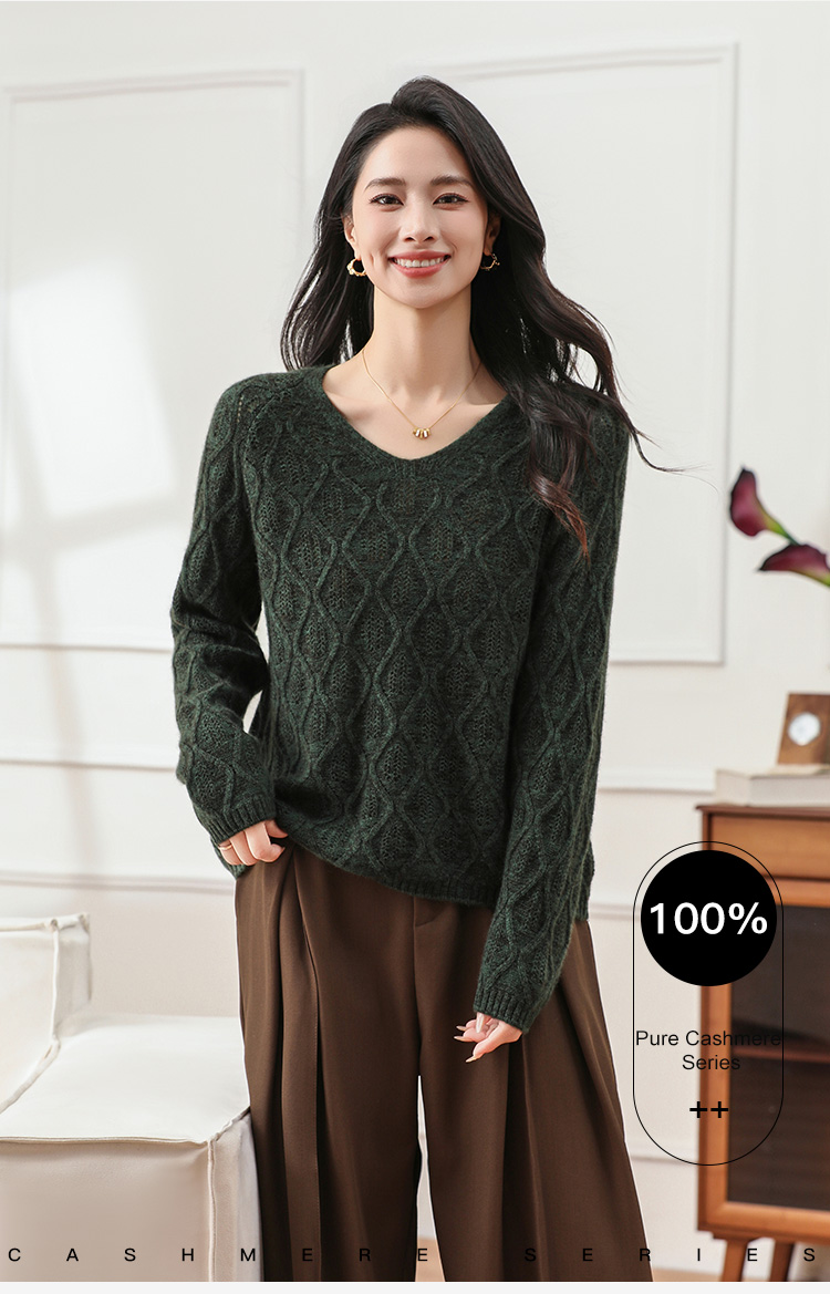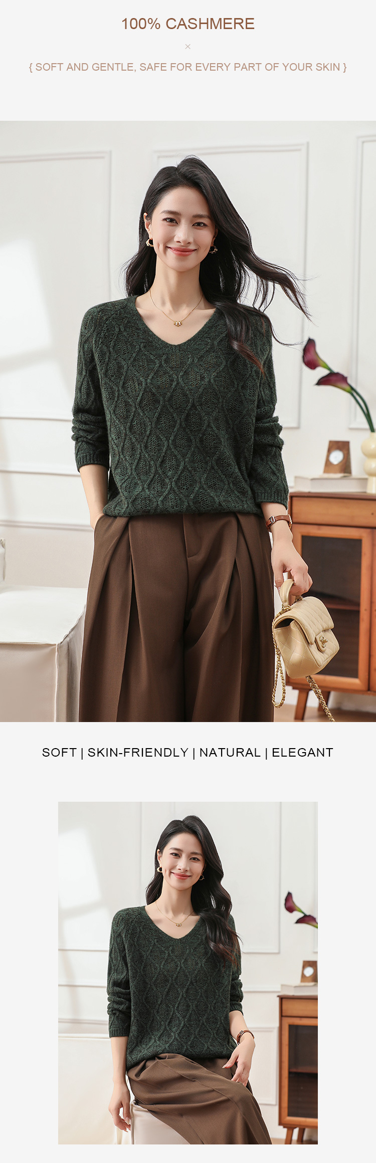 100% Cashmere | V넥 아가일 패턴 패션 가을겨울 여성용 풀오버 롱슬리브 캐시미어 스웨터(V ネック アーガイル柄 ファッション 秋冬 レディース プルオーバー ロングスリーブ カシミヤセーター) – YTNL5671T