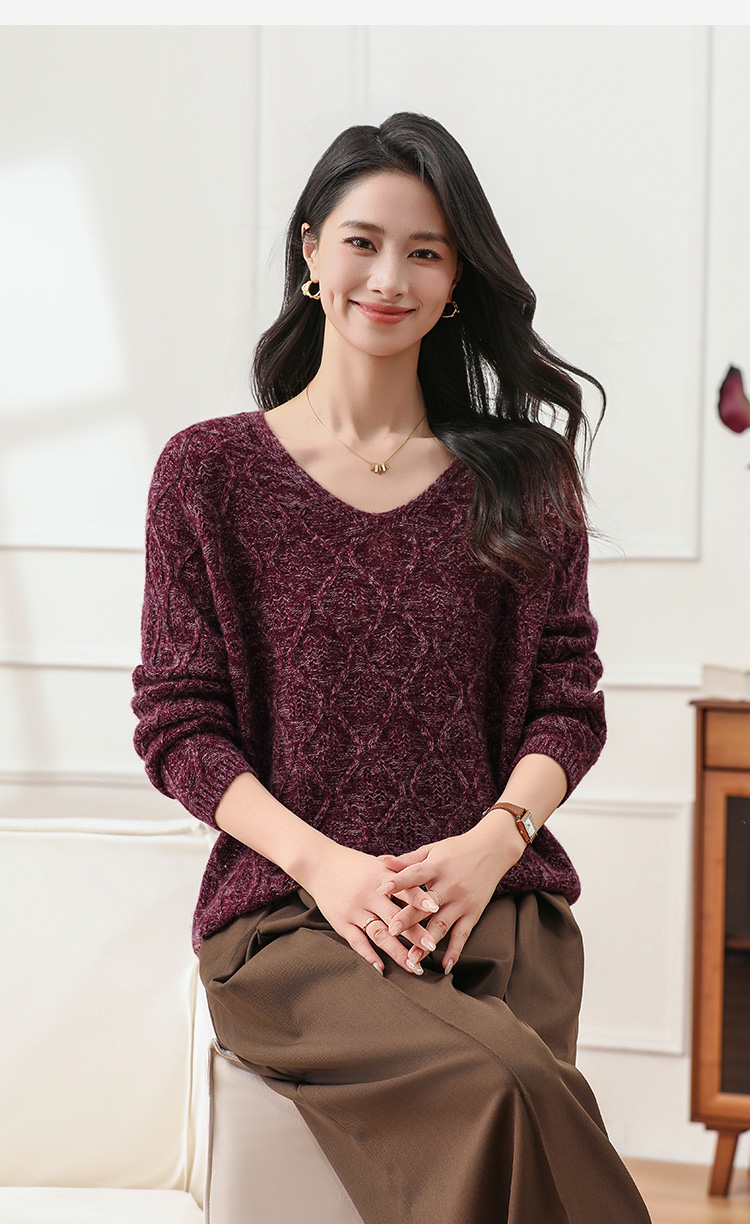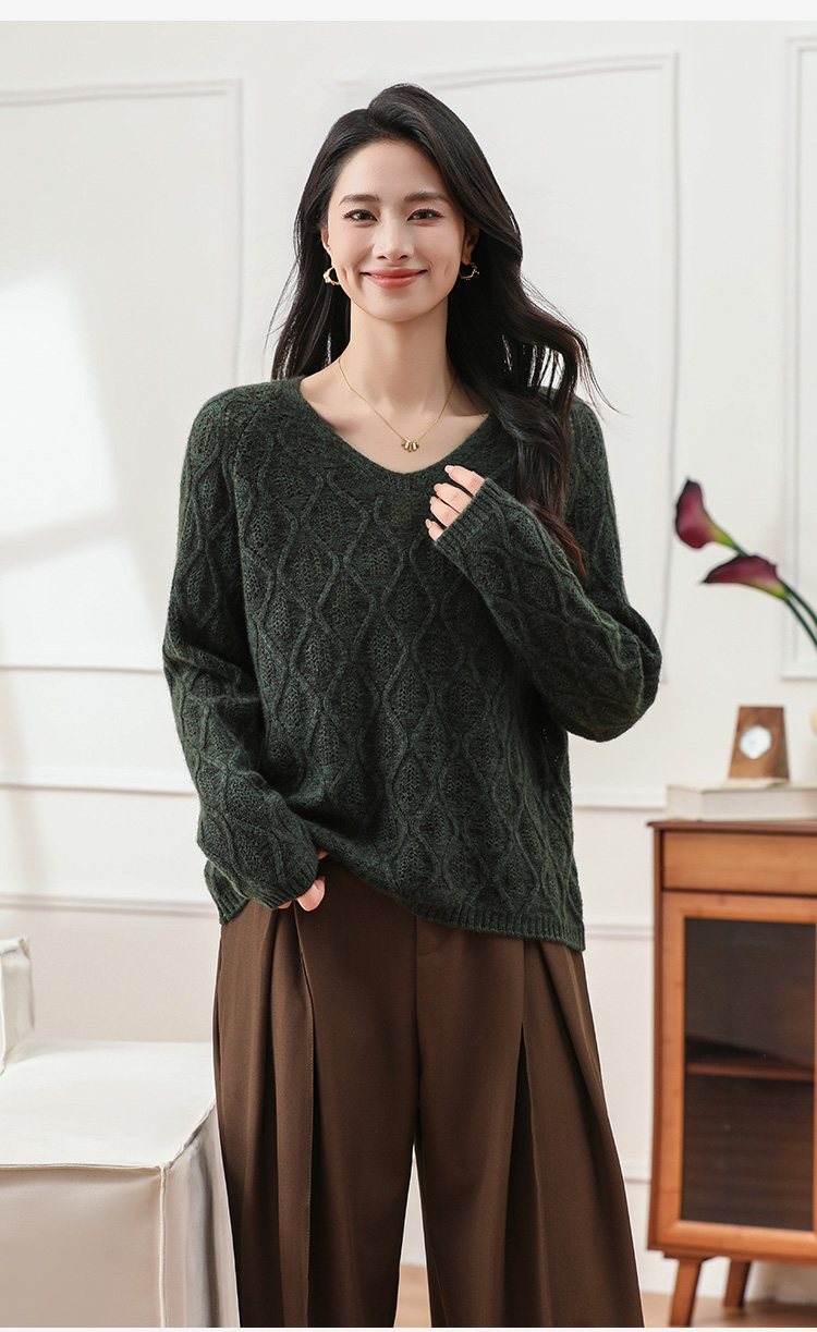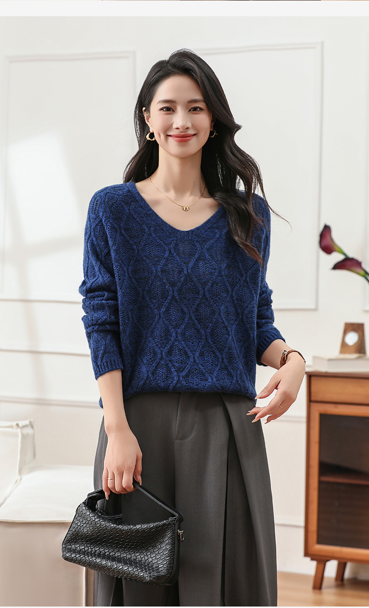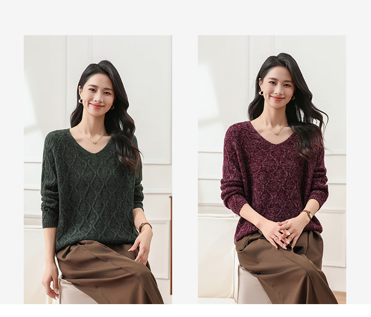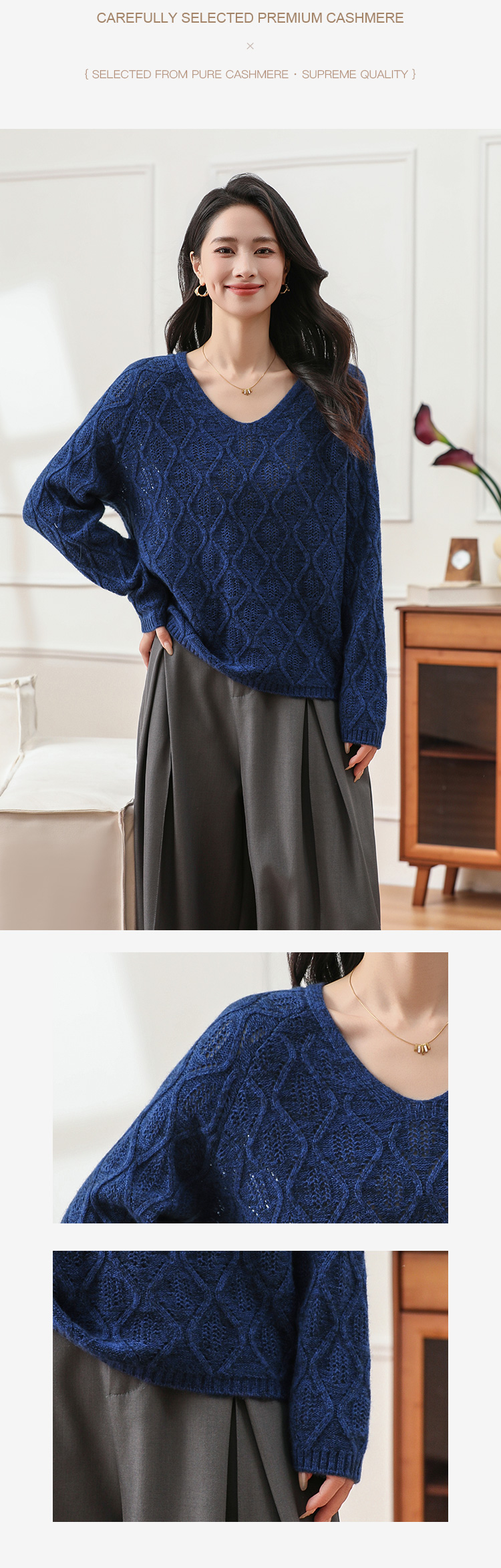 100% Cashmere | V넥 아가일 패턴 패션 가을겨울 여성용 풀오버 롱슬리브 캐시미어 스웨터(V ネック アーガイル柄 ファッション 秋冬 レディース プルオーバー ロングスリーブ カシミヤセーター) – YTNL5671T