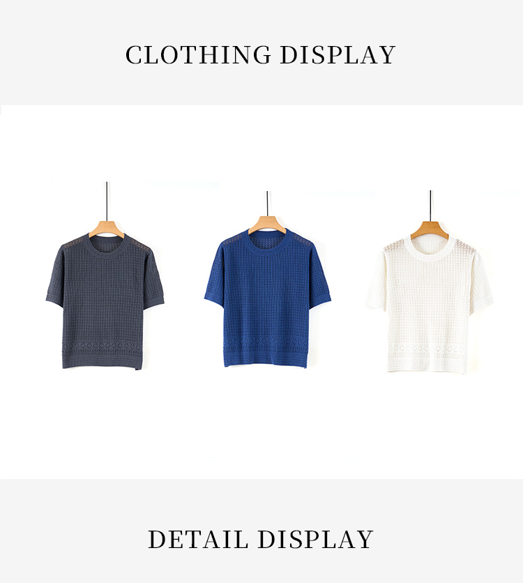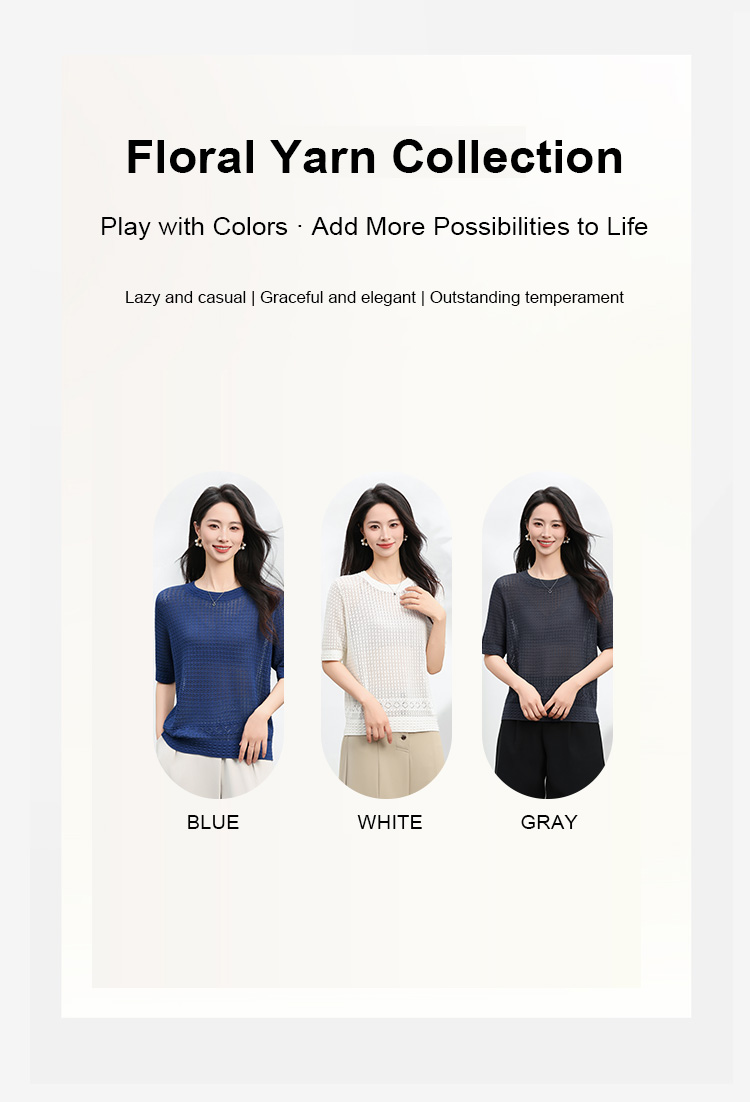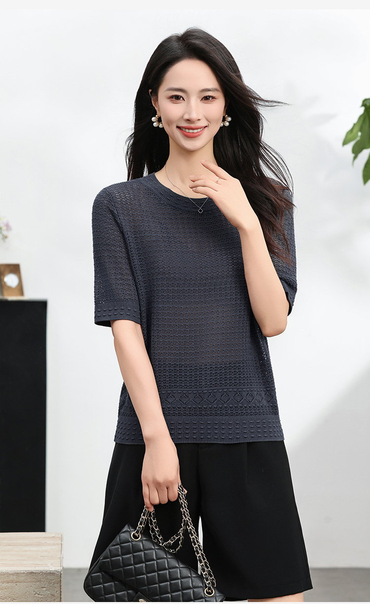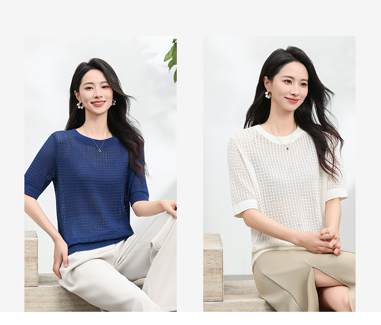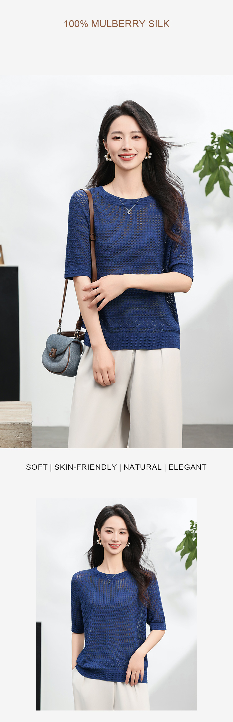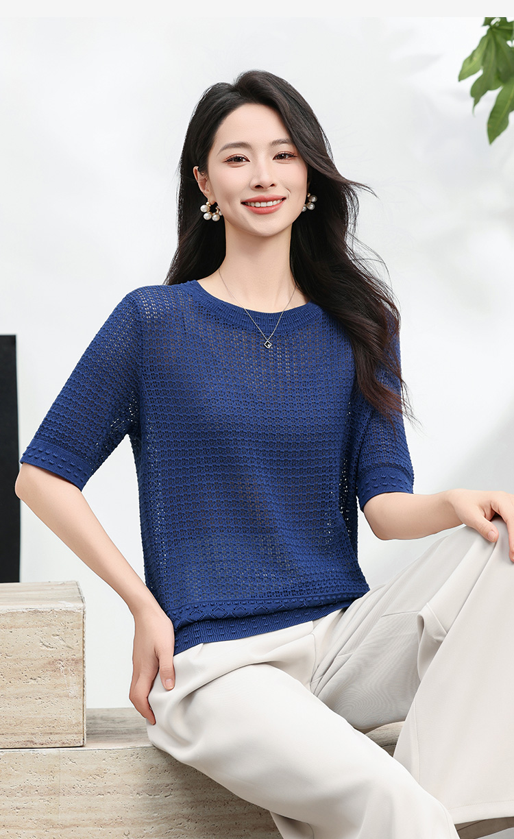 Mumeng [100% Mulberry Silk] Size 25 캐주얼 숏슬리브 홀로우아웃 여름 여성용 니트 탑(カジュアル ショートスリーブ ホローアウト サマー レディース ニットトップス) – YTNL5619T